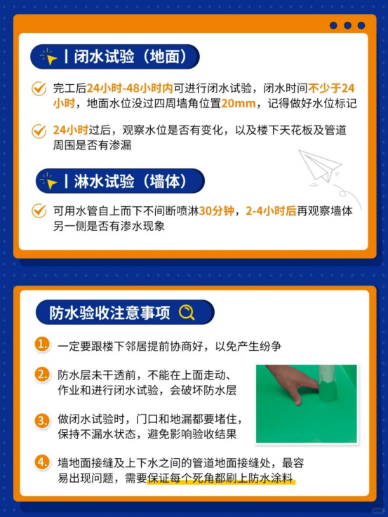 总之,防水验收必不可少,避免返工和后期维修!还有,记住最重要的一条是,选择优质的防水材料和专业的防水施工团队!!!